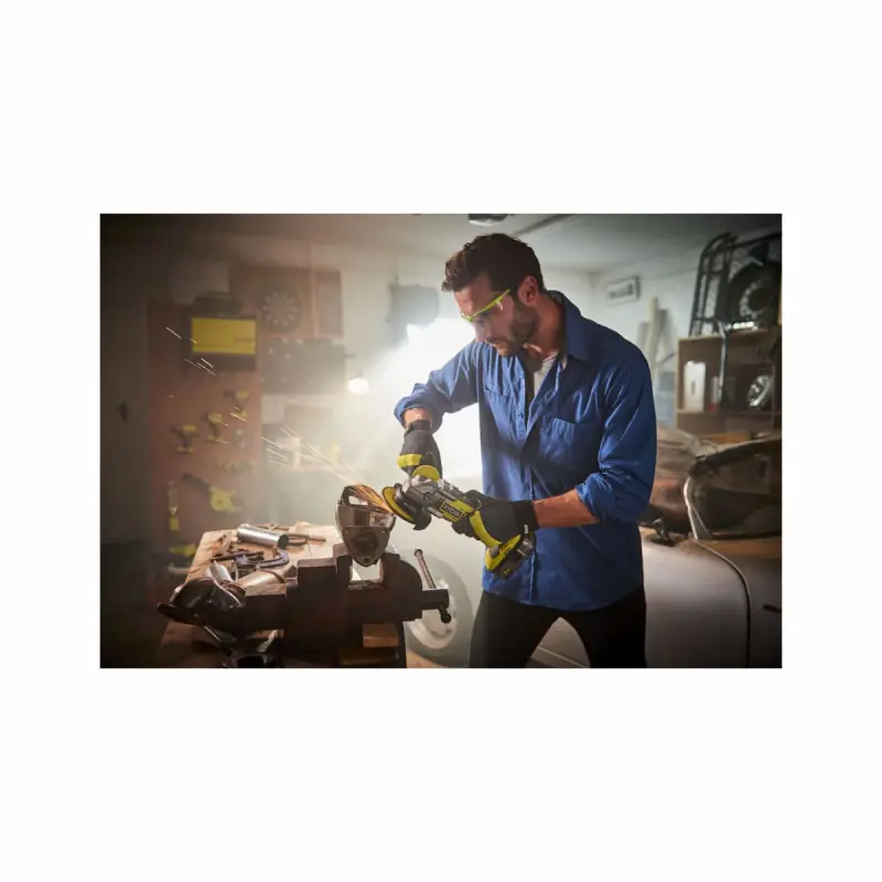 The RYOBI 18 V One+ Brushless Angle Grinder - without battery or charger R18AG7-0 is a versatile tool. It allows you to cut, grind, sand, or polish. It is perfect for working with metal, stone, breeze blocks, cement, marble, etc. Its 3-position auxiliary handle with anti-slip coating offers a better grip on the machine for optimised comfort.