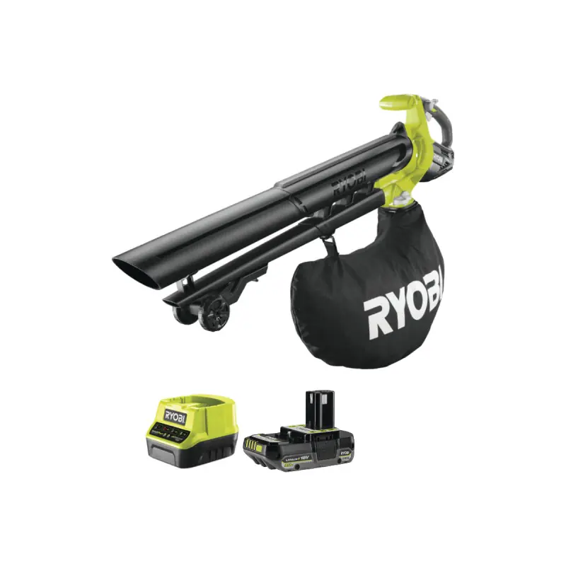 TheRYOBIpack consists of a18V One+ Brushless OBV18 blower vacuum shredderand its accessories: a 2.0Ah batteryand afast charger. This blower has a large air flow capacity to blow away wet and dry debris with power and efficiency. Additionally, it is equipped with a brushless motor from "Brushless" technology, meaning it is a powerful motor that offers long run time and durability. Finally, the 2.0Ah battery and its One+ fast charger are compatible with the entire range of RYOBI One+ tools and gardening equipment.