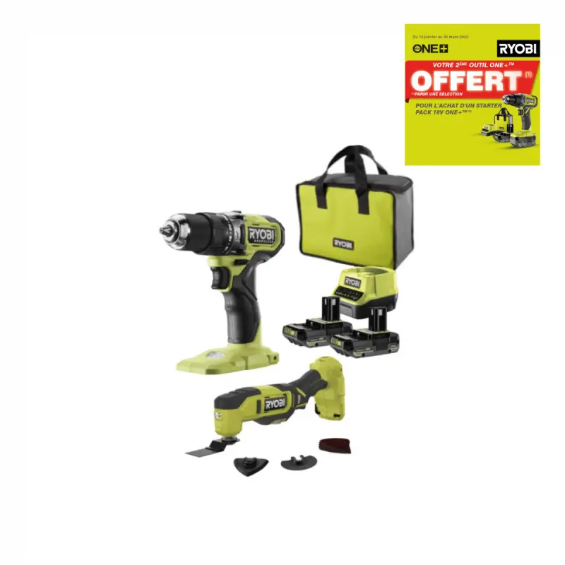 This RYOBI 18V One+ Brushless Hammer Drill/Driver - 2 batteries 2.0 Ah - 1 charger - RPD18BL1-2C42S includes everything you need for drilling and driving screws. The drill/driver features a Brushless motor that provides more power and runtime while extending its lifespan. The 13 mm keyless chuck allows for various types of drilling, including those with a large diameter. The tool will adapt to your needs with 24 torque settings and a speed control. This pack also includes a free multi-function tool!