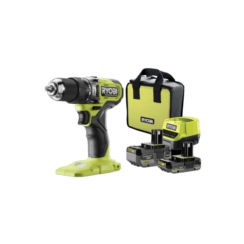 This RYOBI 18V One+ Brushless Hammer Drill/Driver - 1 x 4.0 Ah battery - 1 x 2.0 Ah battery - 1 charger - RPD18BL1-2C42S includes everything you need for drilling and driving screws. The drill/driver features a Brushless motor that provides more power and runtime while extending its lifespan. The 13 mm keyless chuck allows for various types of drilling, including those with larger diameters. The tool adapts to your needs with 24 torque settings and a speed control.