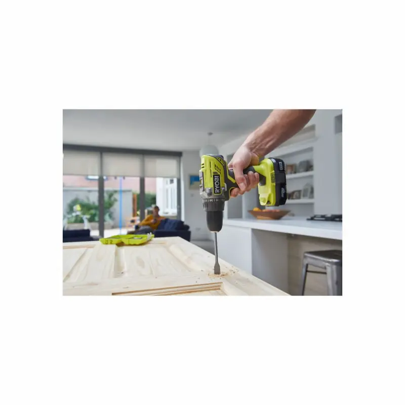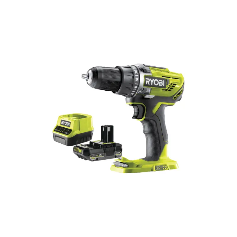 The RYOBI pack contains a18V One+ R18DD3 drill/driverand its accessories: a 2.0Ah battery anda fast charger. It is suitable for various types of work. Versatile, the drill/driver features 2 mechanical speeds that will allow you to carry out all your drilling tasks, including large diameter drilling, particularly thanks to its 13 mm self-tightening chuck. Efficient, the device is equipped with 22 easily adjustable positions. Finally, the 2.0Ah battery and its One+ fast charger are compatible with the entire range of RYOBI One+ tools and gardening equipment.