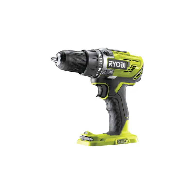 The RYOBI drill-driver - R18DD3-220S - 18V One+ - 2 batteries 2.0Ah - fast charger is an ideal tool for extreme screwing, metal drilling, and large diameter drilling. A 13mm self-tightening chuck ensures formidable efficiency for all types of drilling, including those of large diameters. The tool will adapt to your needs thanks to the presence of 2 mechanical speeds, a speed variator, and to go even further in adjustment, 22 torque positions are available. Comfort is not overlooked as an ergonomic handle makes it pleasant to hold, and a front LED light allows you to always have good visibility on the work area. The drill-driver belongs to the 18V One+ range in which a single battery is compatible with many tools. Moreover, here you will find 2 batteries 2.0Ah and a charger for immediate use.