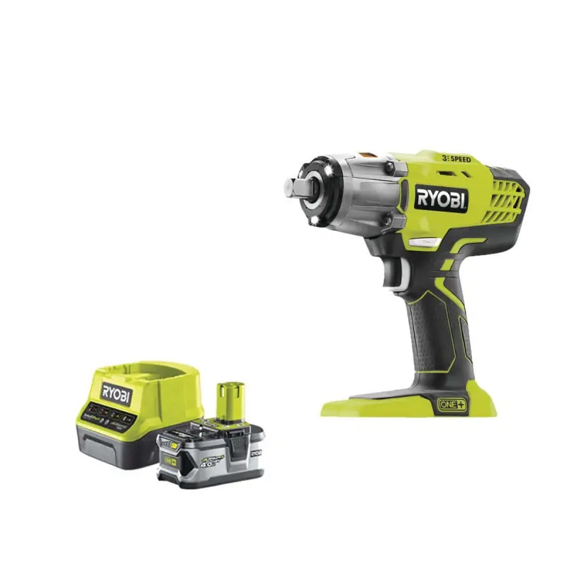 RYOBI 18V One+ R18IW3-0 Impact Wrench Kit - 1 x 4.0Ah Battery - 1 x 2.0Ah Fast Charger RC18120-140 ideal for effortless and extremely efficient screwing! This cordless impact wrench is perfect for screwing everything you need, especially for wheel fastening. Accompanied by a 4.0Ah battery and a 2.0Ah fast charger, you can be assured of the outstanding autonomy provided by LithiumPlus technology to complete your tasks.