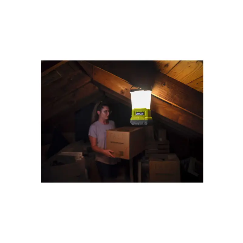 RYOBI LED Lantern Pack 18V One+ 850 Lumens RLL18-0 - 1 Battery 5.0Ah - 1 Fast Charger RC18120-150 the ideal light source to take anywhere. With a variable light intensity of up to 850 lumens, you can illuminate a dark room. The lantern operates with the 18V One+ battery compatible with many other tools. It is easy to carry thanks to its handle, which also allows you to hang the lantern up high if the situation permits.