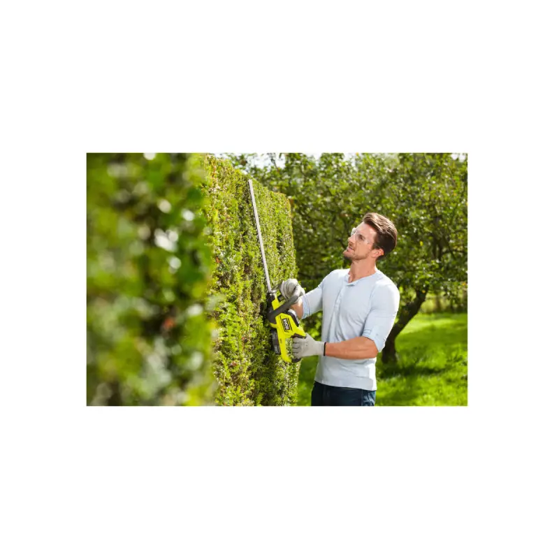 This RYOBI 18V One+ hedge trimmer and its accessories: 1 battery 2.0Ah - 1 fast charger RHT184520 will be ideal for your gardening tasks. Thanks to its translucent blade guard and ergonomic handle, you can work comfortably and safely. Its Hedgesweep waste collector allows you to effortlessly clear clippings by pushing them out of the hedge. The 18V battery is compatible with many other tools in the One+ range.