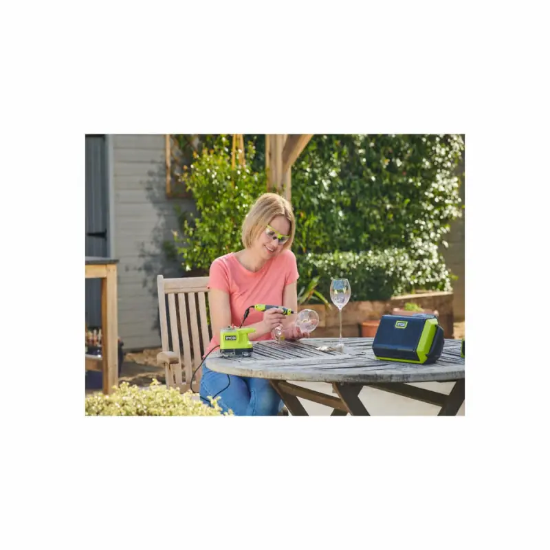 RYOBI 18V One+ Mini Multi-Tool - without battery or charger - RRT18-0 small and compact, it will fit anywhere and be useful in many situations! This mini multi-tool is ideal for small cutting and drilling tasks. With its dial to adjust the speed from 4400 to 23000 rpm, it will adapt to your needs. Thanks to the 15 accessories included, you will have everything you need on hand to sculpt, sand, engrave, or grind.
