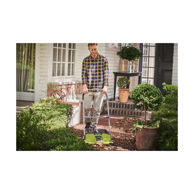 - The adjustable rear wheel allows the sweeper to glide over different terrains