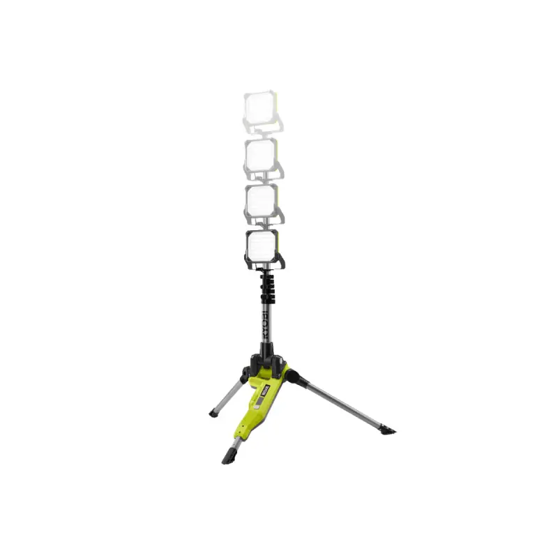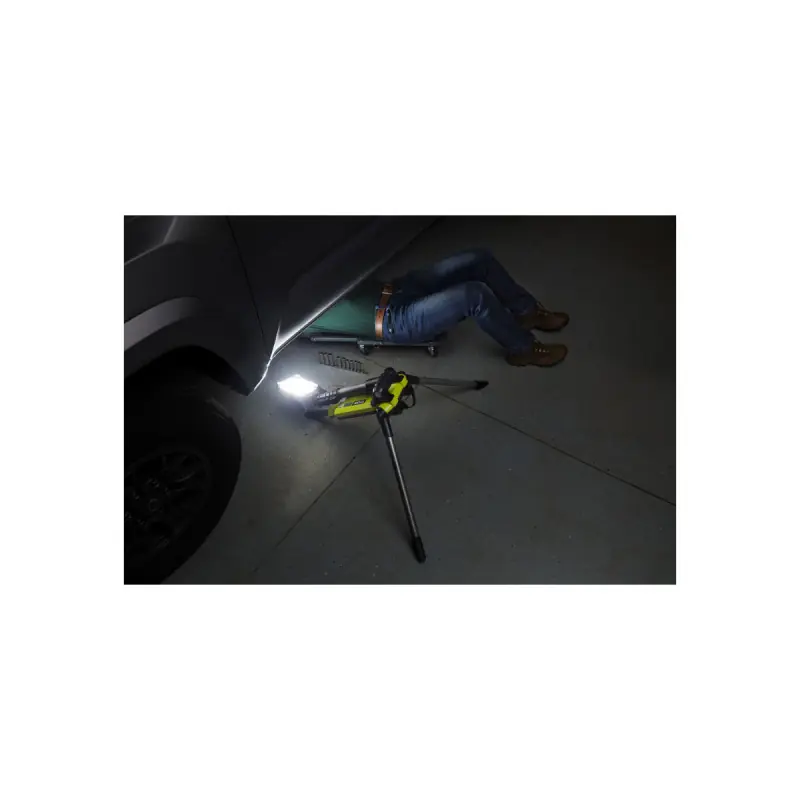 The RYOBI 18V OnePlus LED tripod projector - without battery or charger - R18TL-0 is adjustable and telescopic, making it ideal for construction sites. It adapts to the terrain and allows you to continue working even on unlit sites.