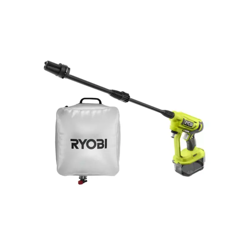 The RYOBI 18V One+ Pressure Washer - Without battery or charger RY18PW22A-0 is ideal for cleaning surfaces simply, quickly, and effectively. The various accessories compatible with the device are quick and easy to connect. Its 3-in-1 nozzle (pencil jet, 15° jet, rinse jet) allows for easy and rapid switching from one jet to another. Up to 4 times more power than a standard garden hose. Its compact and lightweight design allows for easy transport. The 20 L water bag RAC717 included enables fully mobile use of the device without worrying about being near a water source.