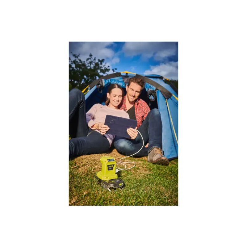 RYOBI 18V One+ USB Charger - 2 USB Ports - R18USB-0 charger featuring two USB ports, ideal for charging your phones from a One+ battery.
