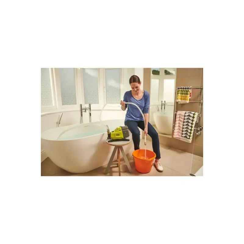 The RYOBI 18V One+ Water Pump - 1500 L/H - Without battery or charger - R18TP-0 is ideal for domestic use. The maximum water lifting height is 14 m.