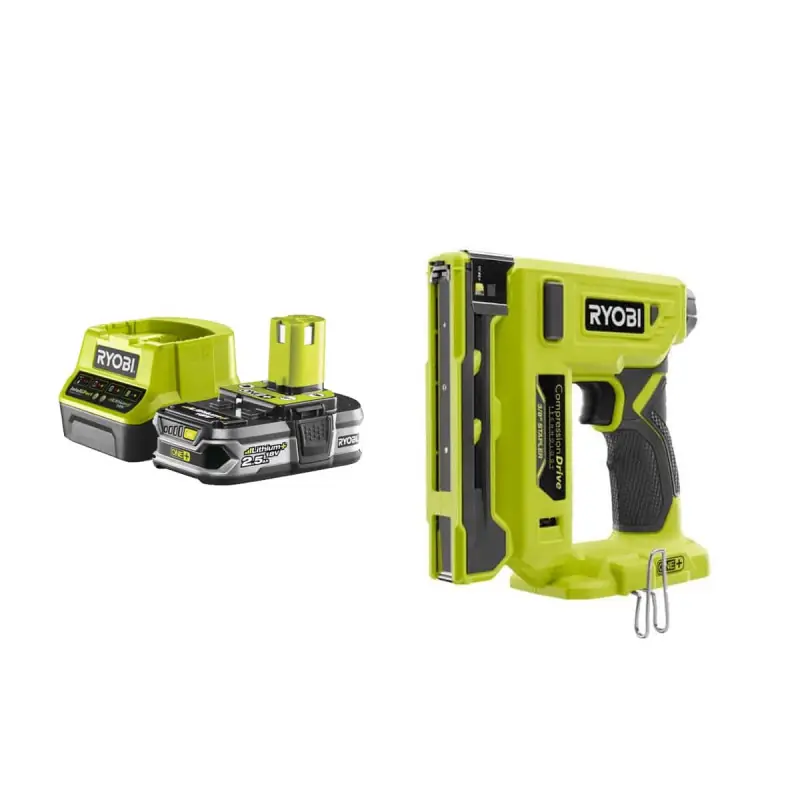 A RYOBI 18V Stapler Pack R18ST50-0 - 1 Battery 2.5Ah - 1 Fast Charger RC18120-125
