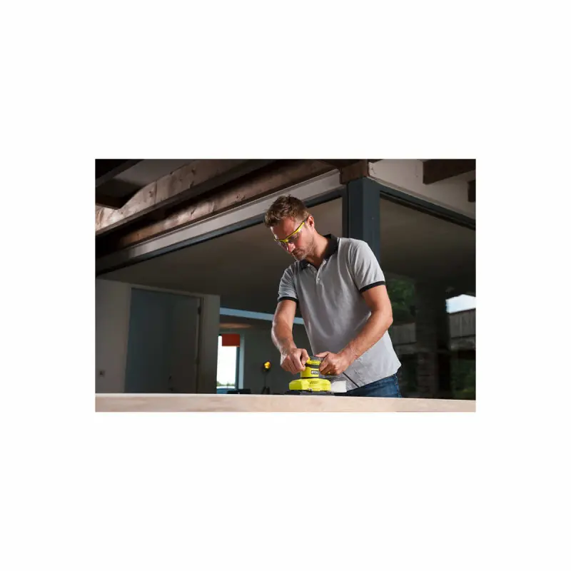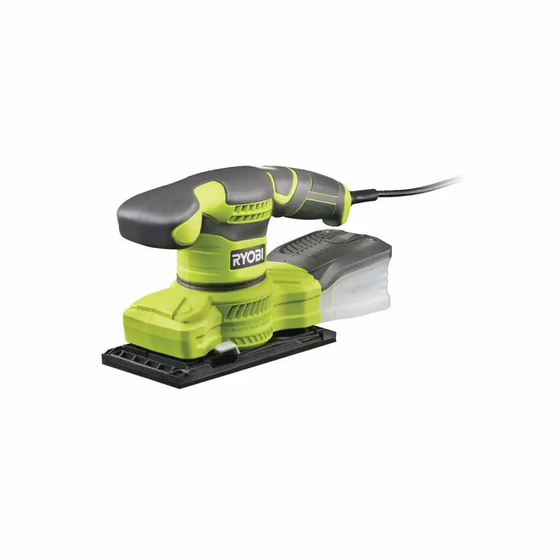 The RYOBI 200W 1/3 Sheet Vibrating Sander RSS200G features a dust extraction system and plastic collector to keep your workspace clean.