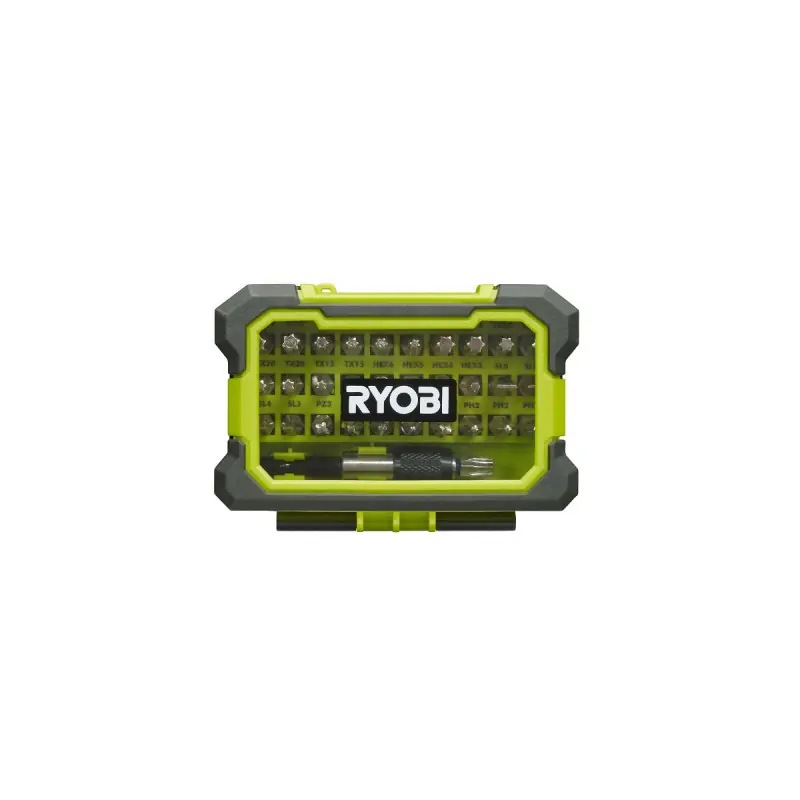 ThisRYOBI 32-piece impact-resistant screwdriver bit set - quick-release bit holder - RAK32MSD contains all the bits you need for your screwdriving tasks. It includes various bits such as Torx, Philips, Flat, Pozidriv, Hexagonal, and security Torx, along with a quick-release bit holder ¼”. The reinforced case can be attached to your belt with a hook, allowing you to work anywhere easily and safely.