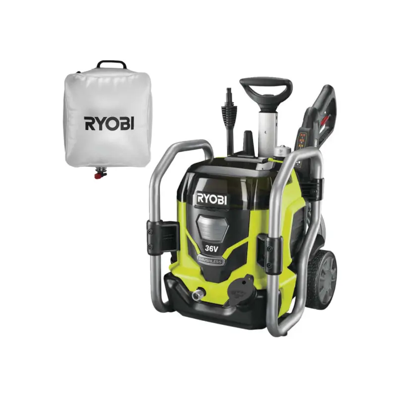 This pack contains aRYOBI Brushless 36V pressure washer - without battery or charger RPW36120HI with a 36 V brushless motor with a power of 1600 W. The device is easily transportable even on uneven surfaces. It is ergonomic and easy to use. The pack also includes a20L water bag RAC717 ideal for use away from an outdoor tap!