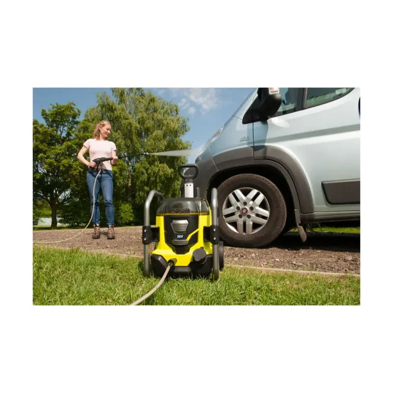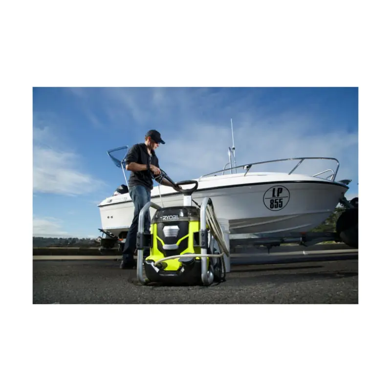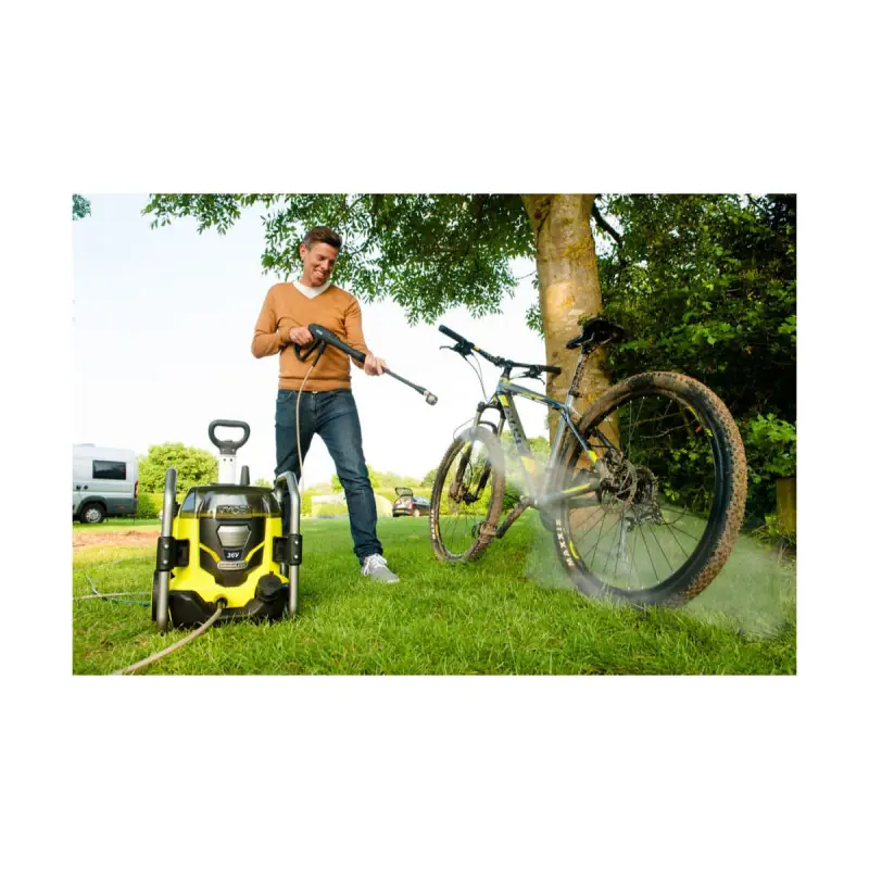 The RYOBI 36V LithiumPlus brushless motor pressure washer RPW36120HI is ideal for cleaning your car, garden, and any surface under 20 m². It offers you portable use thanks to its 25 L water pouch. The device operates with a 36V battery that is compatible with all other RYOBI tools in the same range.