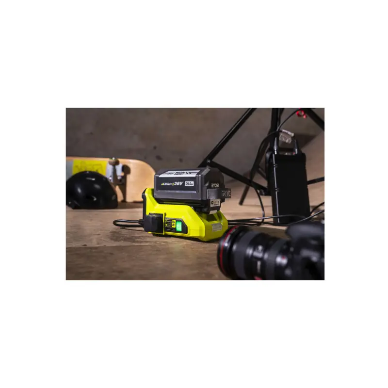 RYOBI 36V LithiumPlus Transformer - RY36BI300A-0 this transformer comes with a continuous mains power supply of 300 V to power wired products away from home. It is ideal for sensitive electronic products and small devices such as laptops, cameras, drones, lights, etc. A product you will adopt for camping, travel, and more!