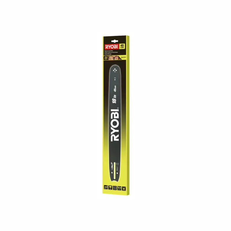 The RYOBI 45cm guide for petrol chainsaws RAC231 is ready to use and is compatible with the RCS5145B model.
