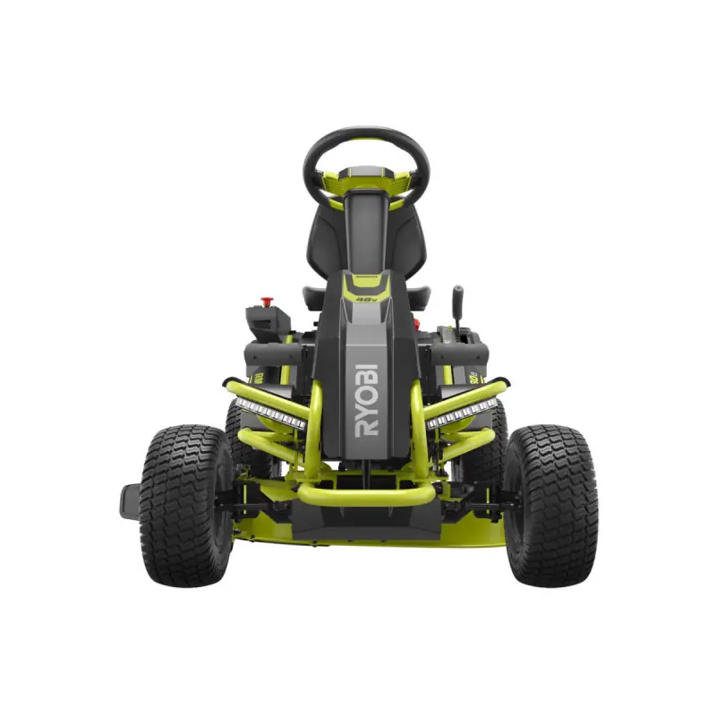 A RYOBI 48V Brushless Rider Mower - 96 cm cut - RM480E 1 x mower 1 x lead battery 1 x charger Delivered in its original packaging