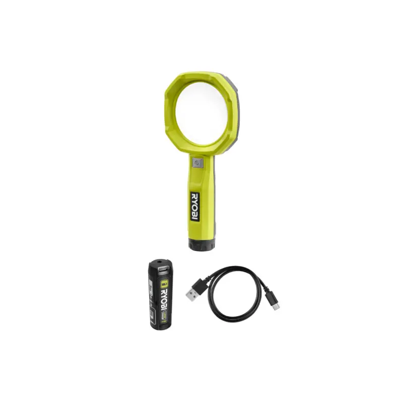 The RYOBI 4V Magnifying Lamp RML4-0 - 240 lumens - 1 Battery 3 0Ah - USB Cable includes a product that is suitable for precision work thanks to a magnification of x3. You will have both a magnifying effect to see more and a lamp to illuminate the area you want to work on. The magnifier is powered by the 3 0 Ah battery included in the pack. This battery can be recharged using a 4V charger (sold separately) or via a USB-C cable (included). You can also use it as an external battery to charge your phone or another device. With a light indicator, you can monitor the battery level in real-time.