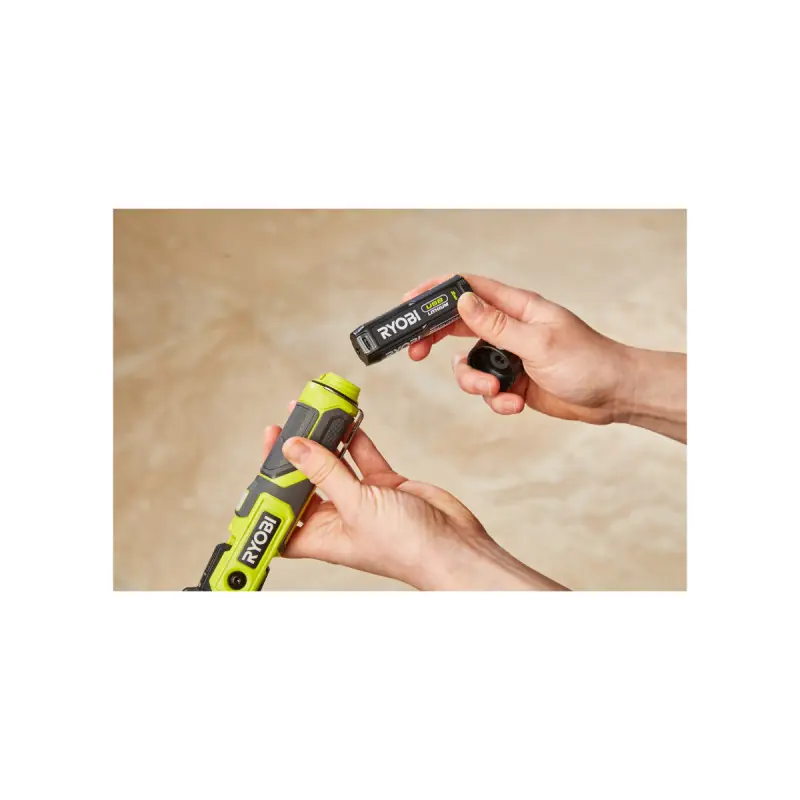 The RYOBI 4V USB Lithium Torch - 640 lumens - 1 Battery 2 0Ah - RLP4-120G is ideal for illuminating dark areas or for walking when the sun has set. Thanks to its small size, you can easily take it anywhere. The pivoting head allows you to adjust the orientation of the light beam to better suit the situation. The lamp can be attached to your belt with a hook, and a magnetic base allows you to place or fix it anywhere. The 4V battery included is compatible with all other tools in the USB Lithium range. It charges via USB cable (included) or via a traditional charger (sold separately).