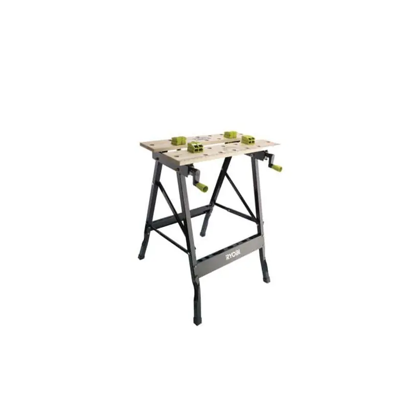 RYOBI Bamboo Workbench 605x625x790mm RWB02 with graduated guides and multi-position jaws allows for easy storage and transport. Thanks to its swivelling vice, it will adapt to your needs.