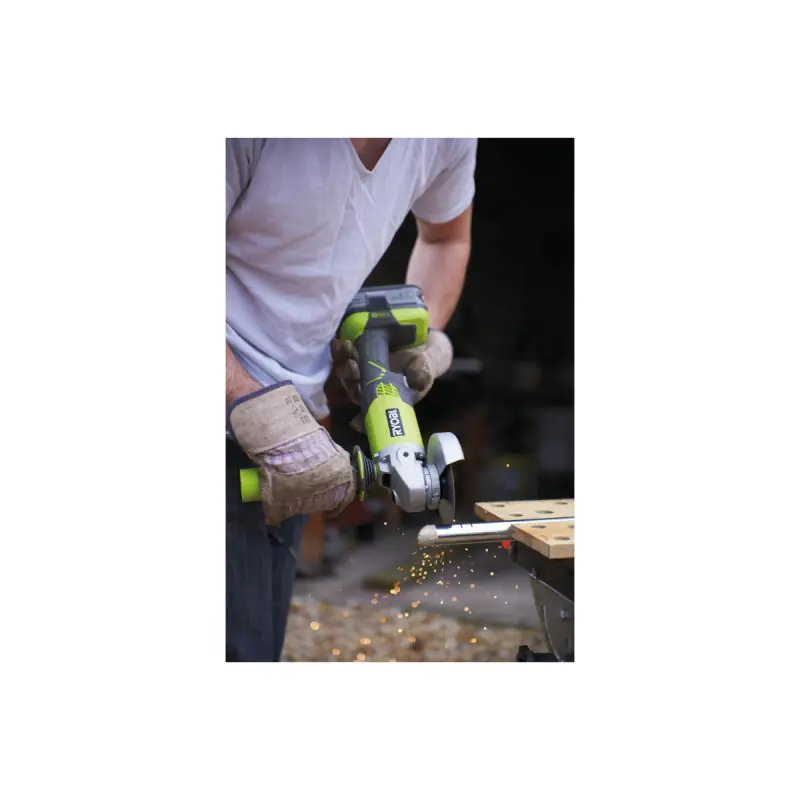 RYOBI Pack Angle Grinder R18AG-0 - 18 V One+ - 1 battery 2.0Ah - 1 fast charger RC18120-120 Angle grinder with double safety switch. Battery and fast charger included.