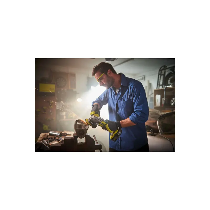 RYOBI Brushless Angle Grinder Pack R18AG7-0 - 18V One+ - 1 x 2.0Ah Battery - 1 x RC18120-120 Fast Charger - Kit of 6 Discs 125 mm perfect pack for working with metal, stone, breeze blocks, cement, marble, etc. Battery and fast charger included. Its 3-position auxiliary handle with anti-slip coating offers a better grip on the machine for optimised comfort.