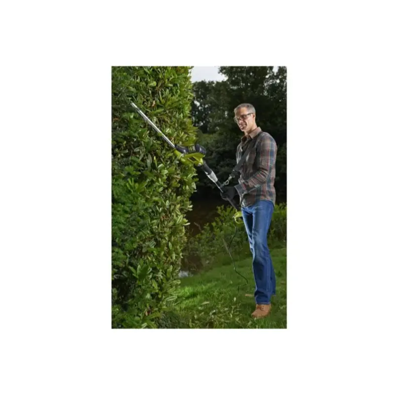 The RYOBI electric pole hedge trimmer - RPT4545E - 450 W will be ideal for reaching over hedges without exerting effort. It features an adjustable 135° articulated cutting head to make the job as simple as possible. This advantage, combined with a 65 cm pole, makes the work efficient. This product has also been designed to ensure maximum comfort with a wide ergonomic handle and a shoulder harness with a retention strap. The hedge trimmer is compatible with the HedgeSweep waste collector if you wish to work with even more comfort.