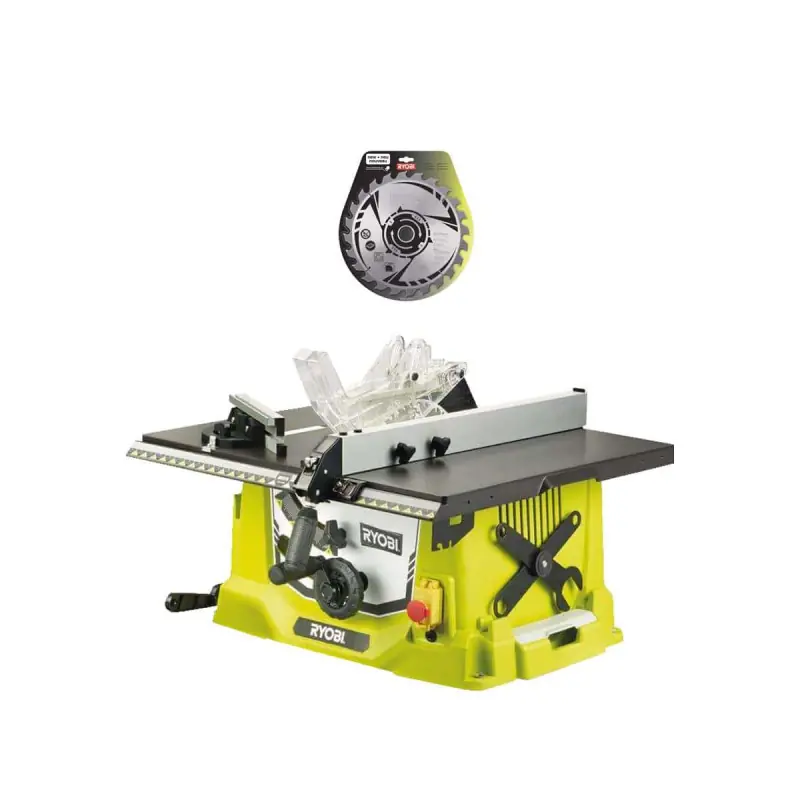 RYOBI Pack Electric Table Saw 1800W 254mm RTS1800-G - carbide blade 254mm 24 teeth SB254T24A1 with a millimetre scale and aluminium parallel guide for guaranteed cutting precision. The integrated storage for service keys and accessories enhances the functionality and usability of this product.
