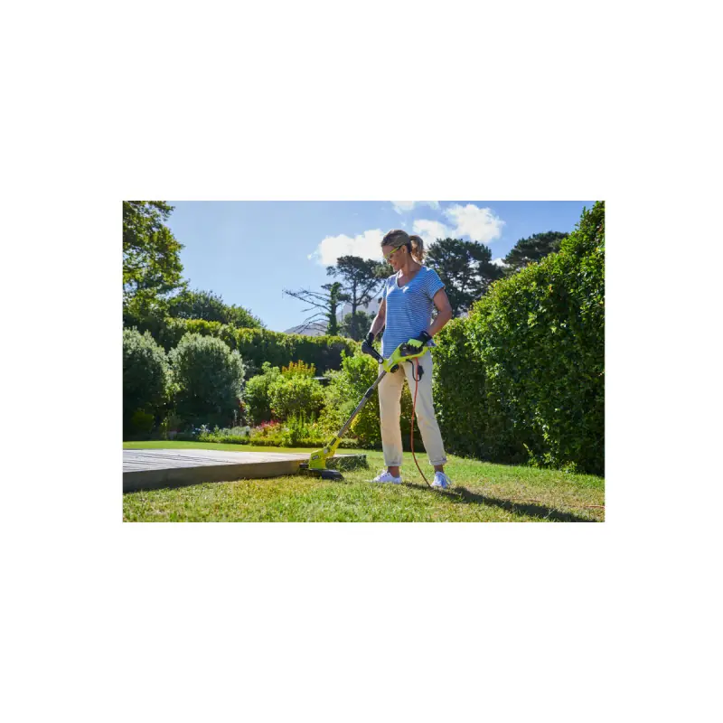 The RYOBI - RLT5127 - 500W - 27 cm trimmer - edger is the ideal tool you need for finishing work on flowerbed edges or for the bottom of slopes. The edger function is easily activated with a 180° rotation of the tube. Comfort during use has been particularly considered. First, there is an adjustable cutting head with 3 positions that allows access to complex areas. Then, an ergonomic handle makes usage pleasant, and the Vertebrae design gives you the option to adapt the device to your height/posture.