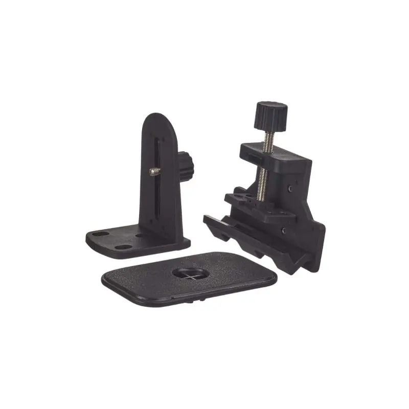 - Comes with a roof cushion at the end of the arm that allows the arm to be stretched between the ceiling and the floor, a clamp to attach to the laser arm, and a laser mounting cap with a 1/4" screw that fits into the laser's thread.