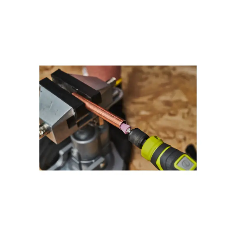 This RYOBI sharpening wheel - RAR504 - 9 5mm is ideal for effectively sharpening non-ferrous metals such as brass, copper, stainless steel, and aluminium. It is compatible with all Ryobi mini-tools and other mini-tools with a 3 2mm chuck.