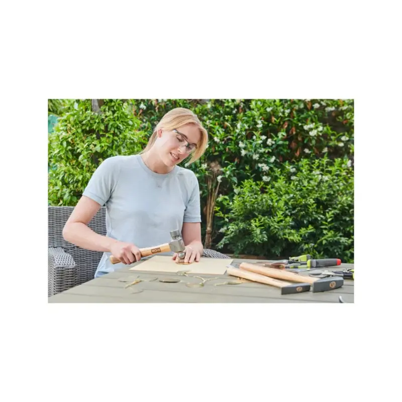 TheRYOBI riveting hammer - 500g - RHHWBP500features a flat face for shaping soft metals as you wish. The spherical face is used for hammering small rounded points or for engraving materials. The striking face is made from a single piece for better durability, and the ball has been polished to last over time. The handle made of white walnut is capable of absorbing vibrations while ensuring a comfortable grip.