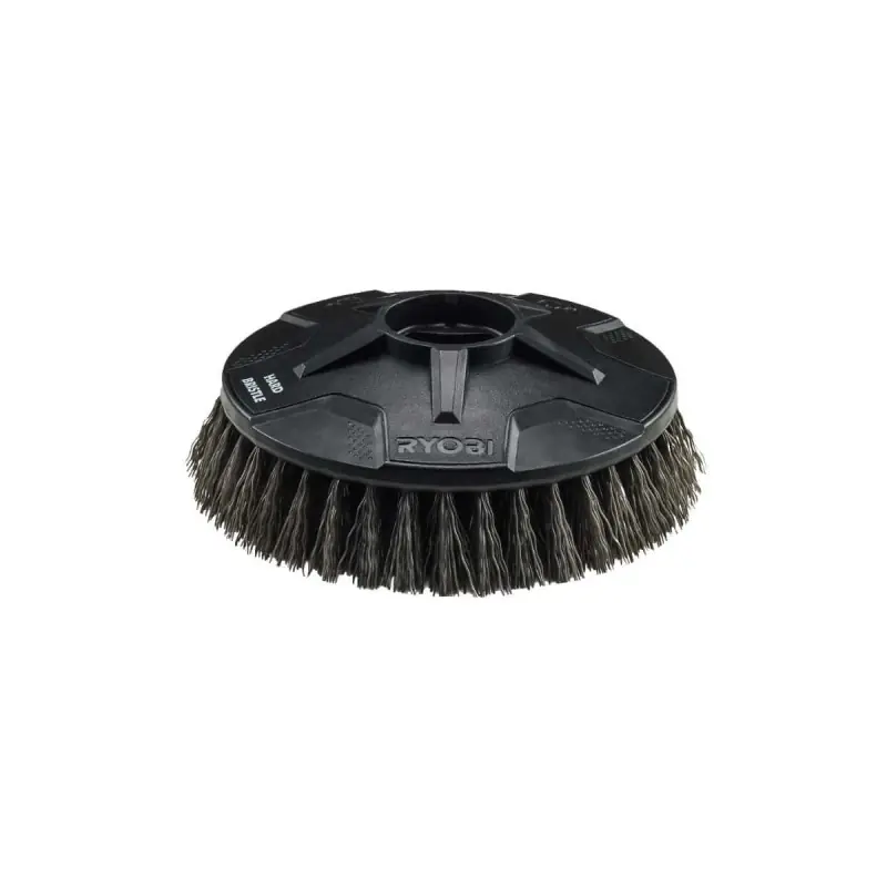 The RYOBI hard surface brush head - RAKSCRUBH is compatible with the R18TPS and R18CPS powered brushes. It is ideal for cleaning hard surfaces such as concrete or stone floors, barbecues, and chimneys, or lightly rusted metals.