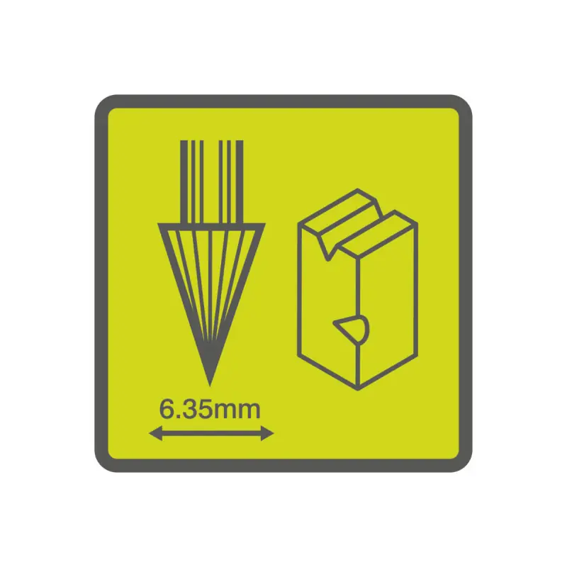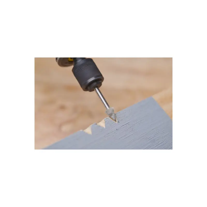 This RYOBI high-speed cutter - RAR102 - 6 35mm features a triangular head that allows for grooves and shapes with a smooth finish. You can also create V-shaped forms depending on the working angle. This accessory is suitable for working on materials such as soft metals, plastic, wood, brick, and rubber. It is compatible with all mini-tools that have a 3.2mm chuck.