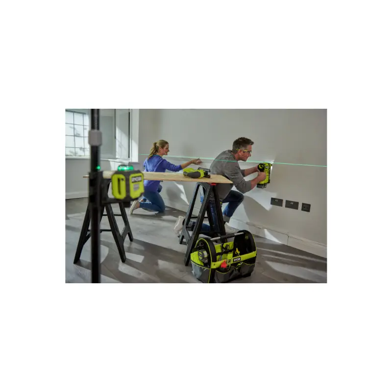 Laser 360° Green - RYOBI Telescopic Pole - RB360GLL-K is ideal for quick levelling and alignment applications such as hanging cabinets, shelves, and pictures in the home. The green laser technology makes the lines 4 times more visible. It projects a powerful 360° line and 1 vertical line simultaneously. The lines can be activated individually to better suit the task. Thanks to its telescopic pole, work in large spaces and cover the entire area with the 360° line!