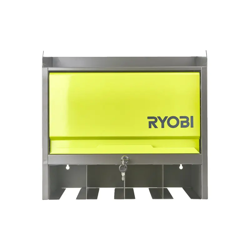 RYOBI One+ RHWS-01 Multifunctional Wall Shelf stores a maximum of RYOBI tools. The RHWS-01 wall shelf is the very first storage solution developed by RYOBI. Stop wasting time searching for the tool you need; organise your work by properly storing and having on hand what you need.