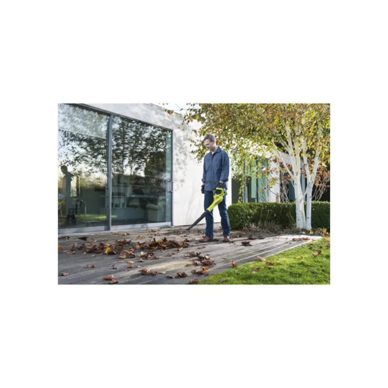 TheRYOBI blower - OBL1820S - 18V One+ - Without battery or chargeris ideal for clearing fallen leaves when autumn is just around the corner. Its angled nozzle will assist you as it helps to lift debris, along with a blowing speed of 245 km/h and an air flow rate of 2 6 m3/min. Comfort is also a priority with an ergonomic handle, a lightweight design (only 1 6kg without battery), and quiet operation. This product belongs to the 18V One+ range, where a single battery (sold separately) is compatible with many tools.