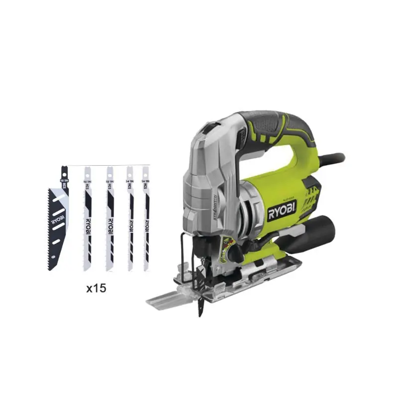 This RYOBI pendulum jigsaw - RJS1050-KA15 is ideal for your sawing tasks. It has a power of 680 W combined with a cutting capacity of 105mm, making your work more precise and your cuts larger. Additionally, it features a variable speed control during operation and its 15 replacement blades suitable for wood, metal, plastic, granite, and tiles will allow you to carry out numerous tasks.