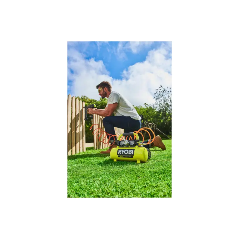 RYOBI Pack R18AC-0 Tank Compressor - 18V One Plus - 4L - 1 x 2.0Ah Battery - 1 x RC18120-120 Fast Charger Ideal compressor inflator for tyre inflation. Battery and fast charger included.