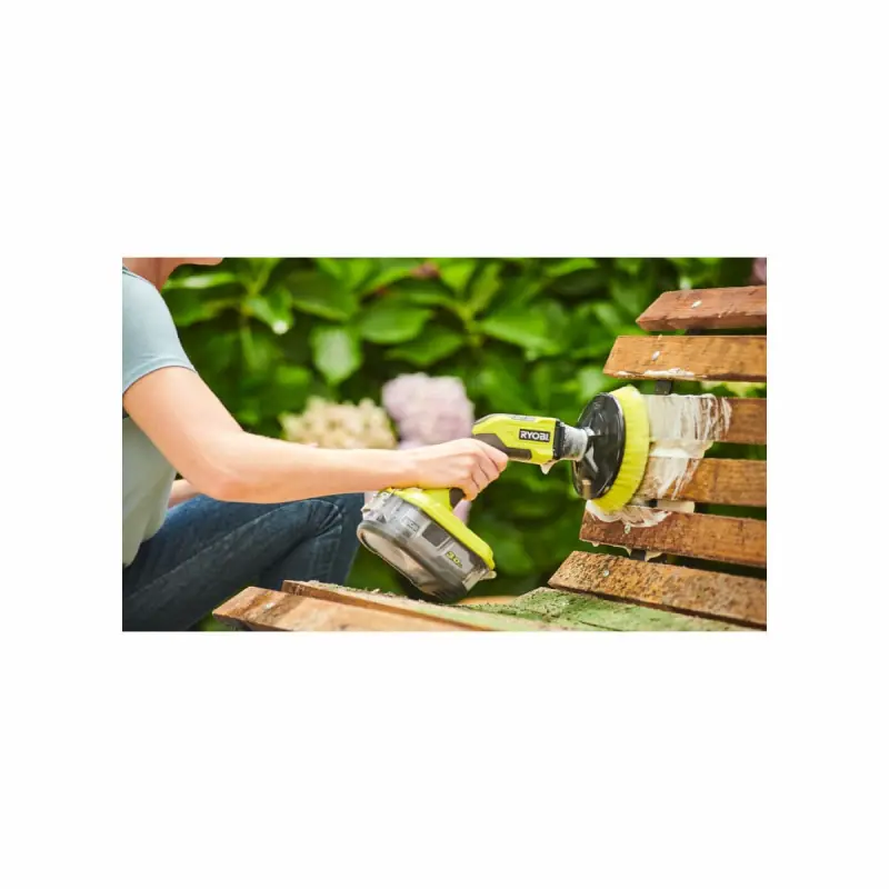This RYOBI pack - R18CPS-0 Motorised Brush - 18V One+ - without battery or charger is ideal for cleaning your items such as outdoor equipment or surfaces. Its 15cm diameter brush is perfect for removing dirt effortlessly. It works with a battery from the Ryobi 18V One+ range sold separately. A foam disc - RAKSCRUBF is included in the pack, ideal for cleaning items like mirrors, hardwood floors, or your car and its wheels.