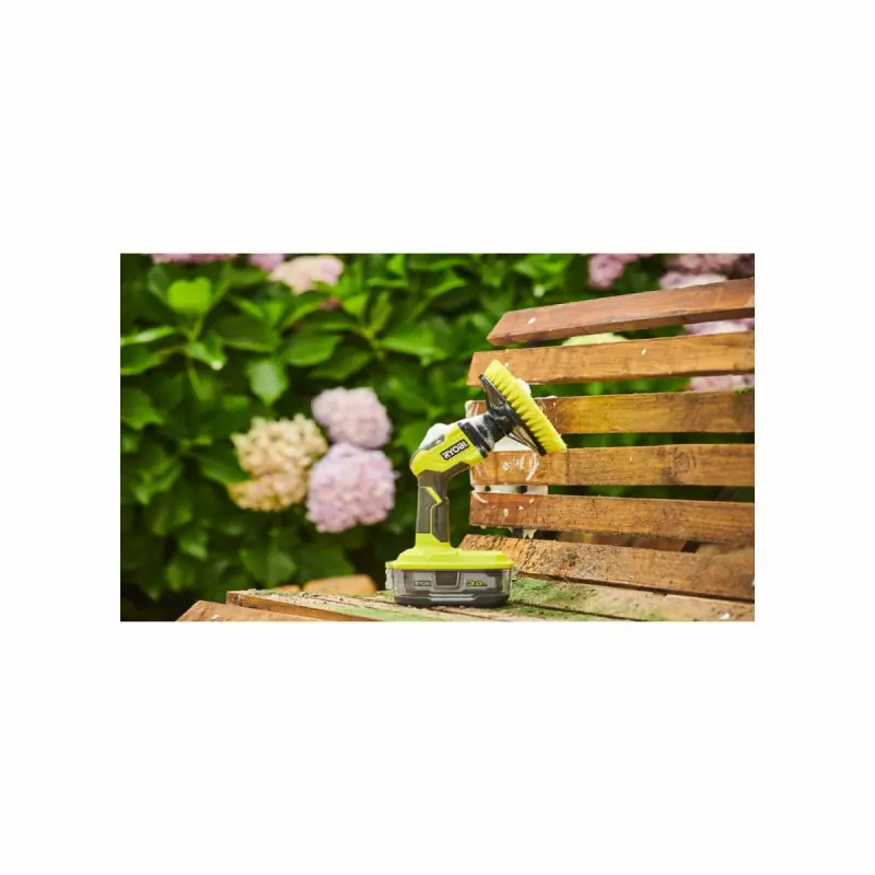 This RYOBI pack - R18CPS-0 Motorised Brush - 18V One+ - without battery or charger is ideal for cleaning your items such as outdoor equipment or surfaces. Its 15cm diameter brush is perfect for removing dirt effortlessly. It works with a battery from the Ryobi 18V One+ range sold separately. A RAKSCRUBM brush head for home and garden furniture is included in the pack.