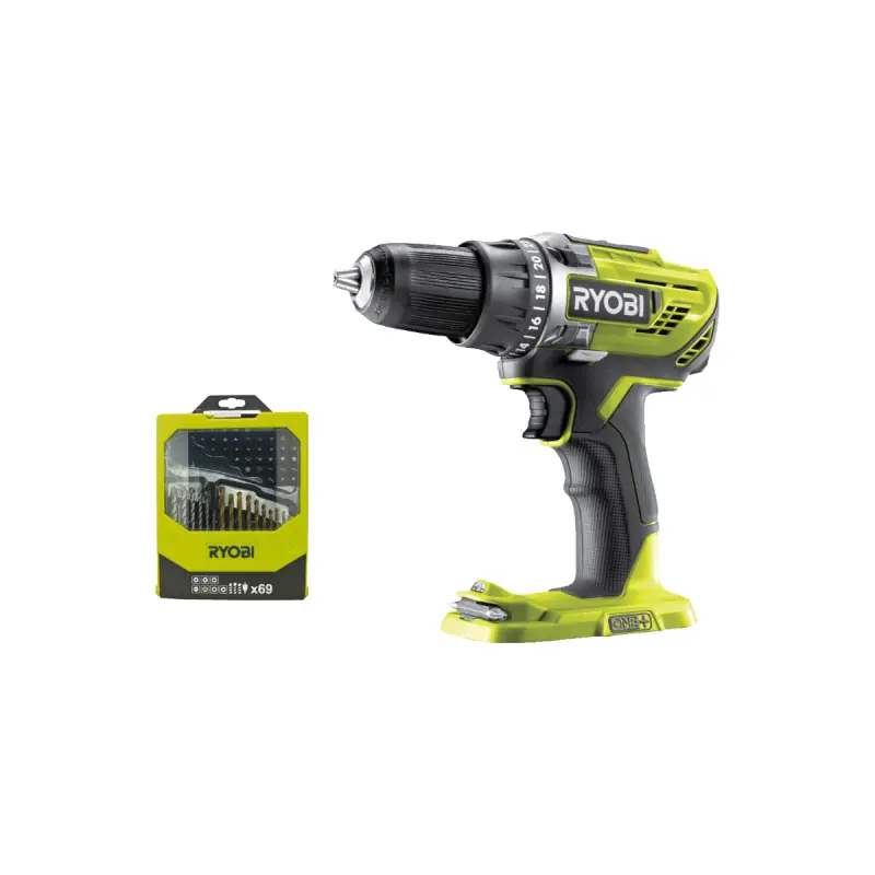 This RYOBI pack includes a R18DD3-0 drill/driver - 18V One+ without battery or charger ideal for carrying out various tasks. Its 2 mechanical speeds will allow you to perform all your drilling tasks, including large diameter drilling, particularly thanks to its 13 mm keyless chuck. The device is efficient and features 22 easily adjustable positions. The tool operates with a battery from the 18V One+ range sold separately. It is supplied with a 69-piece mixed accessory set for drilling and driving RAK69MIX.