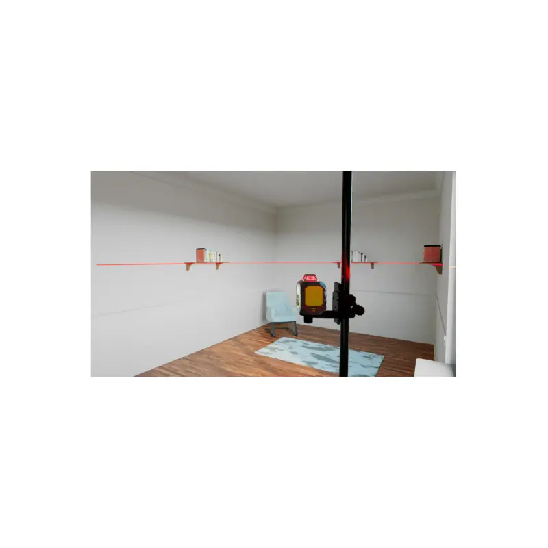 Thisred laser 360 - 20m range is ideal for quick levelling and alignment applications such as wall cabinets, shelves, and pictures in the home. It projects a powerful and precise 360° line and 1 vertical line simultaneously. The lines can be activated individually to better suit the task. With this tool, work in large spaces and cover the entire area with the 360° line! The 1/4" mount can be attached to a tripod and a laser stand.
