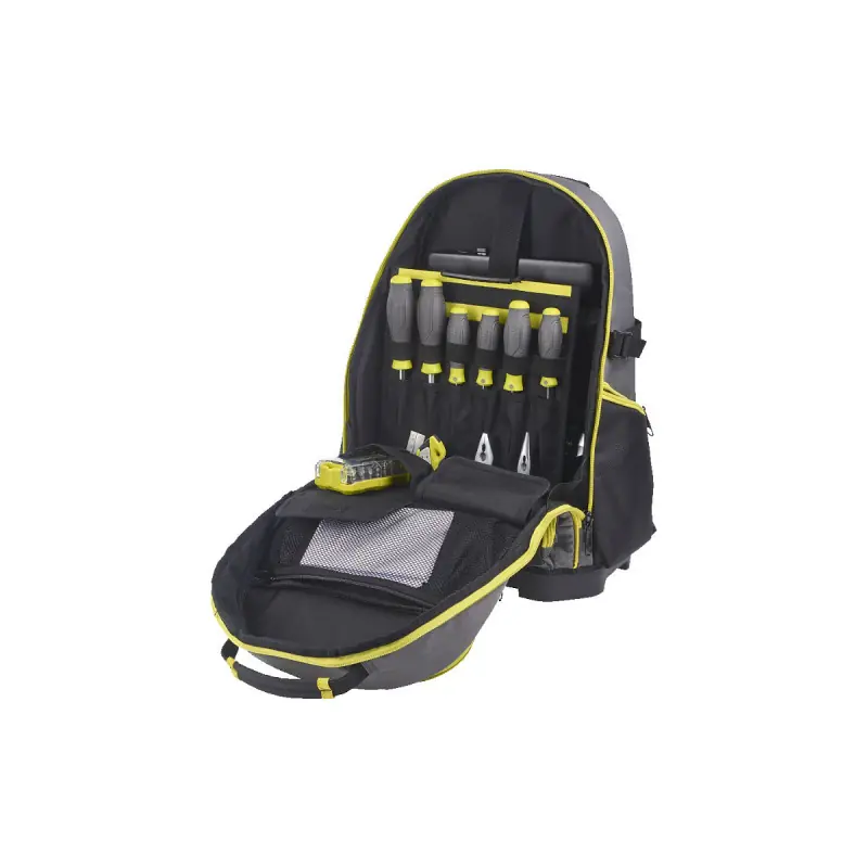 - Multiple compartments for accessories and tools: 1 laptop compartment, 1 organiser for various hand tools, 2 covered internal pockets, and 1 pocket with a zipper