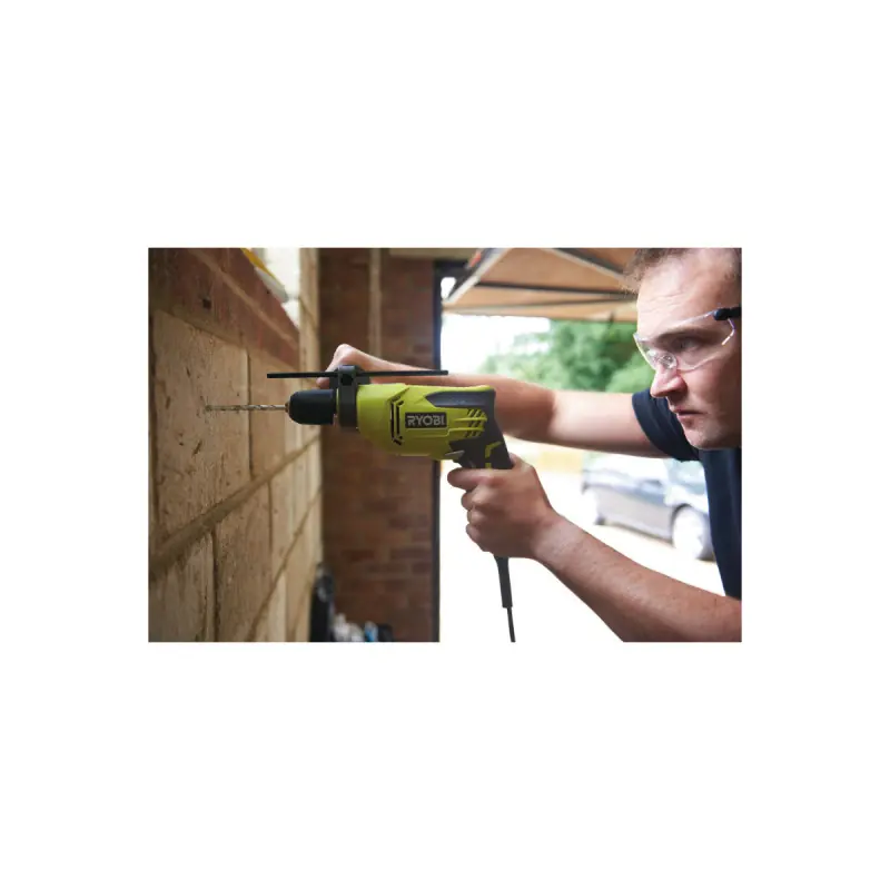 The RYOBI 680W RPD680K percussion drill with its micro-cellular GripZone+ handle ensures great comfort of use and a better grip. Its 680 W motor will allow you to carry out the tasks you desire, and the drill will adapt to your needs with several features (a speed variator, a reverse rotation switch, a hammer stop, and an auxiliary handle).