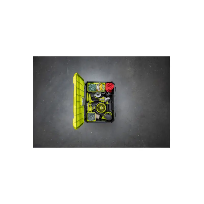 The RYOBI Link Tool Box - capacity 36 kg - RSL102 is a compact storage solution for organising tools as well as accessories. The interior of the box is intelligently compartmentalised to help you keep everything well organised. Specific storage areas are present to isolate bits and sockets. With an IP65 rating, you can be assured that the contents of the box are protected from water and dust ingress. The tool box is compatible with other products in the RYOBI Link system.