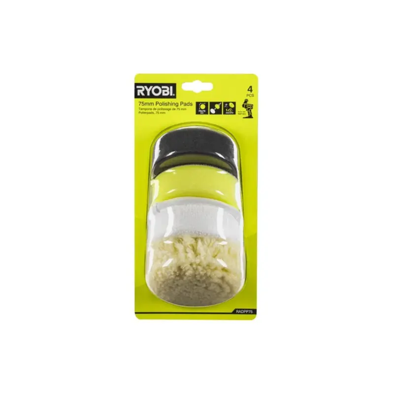 Thisset of 4 RYOBI pads for the RDP18 polisher - RADPP75is a collection of accessories that includes a microfiber pad for removing major defects with a smooth finish, a foam pad for superficial scratches, a finishing pad for glossy finishes, and a wool pad that allows for the removal of wax and paint sealants from the bodywork. These pads are compatible with the RYOBI RDP18 model.
