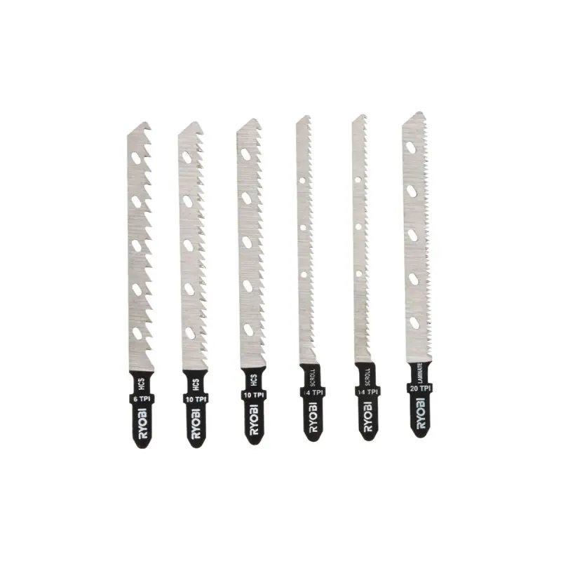 TheRYOBI One+ RAK6JSBW special jigsaw blade set of 6is ready to be paired with several jigsaws. Indeed, they are compatible with R18JS7-0 R18JS-0 and RJS1050KA5. Additionally, they feature asharpened tooth design for better efficiency in wood, as well as milled and wavy teeth for straight cuts in metal.